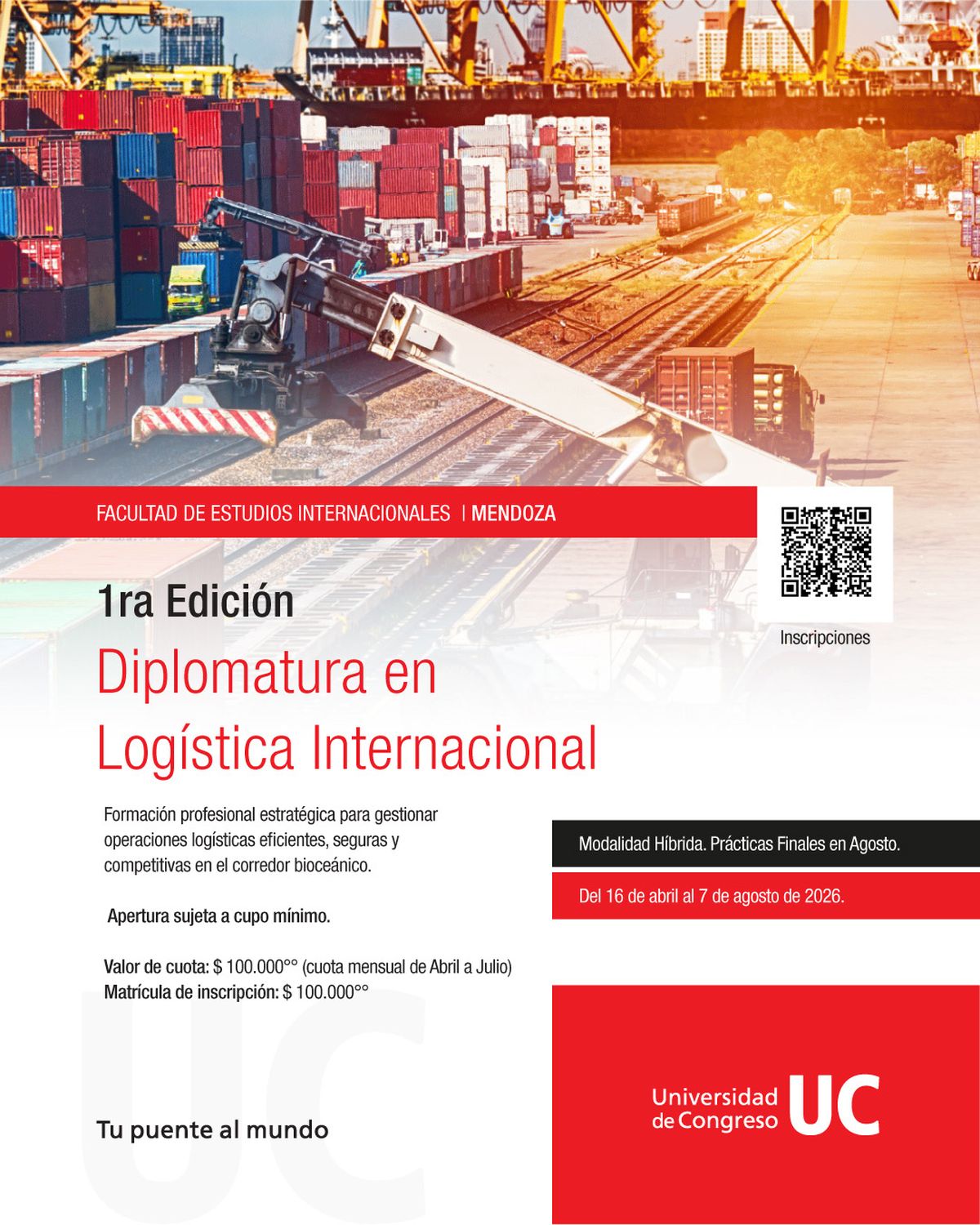La Universidad de Congreso, a través de su Facultad de Estudios Internacionales, presenta la Diplomatura en Logística Internacional (1ra edición), una propuesta académica orientada a la formación de profesionales capaces de gestionar operaciones logísticas eficientes, seguras y competitivas en el contexto del comercio global.