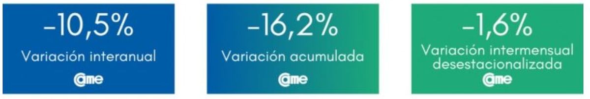 En el análisis por rubro, los siete sectores evaluados tuvieron disminuciones en comparación con el mismo período del año anterior.