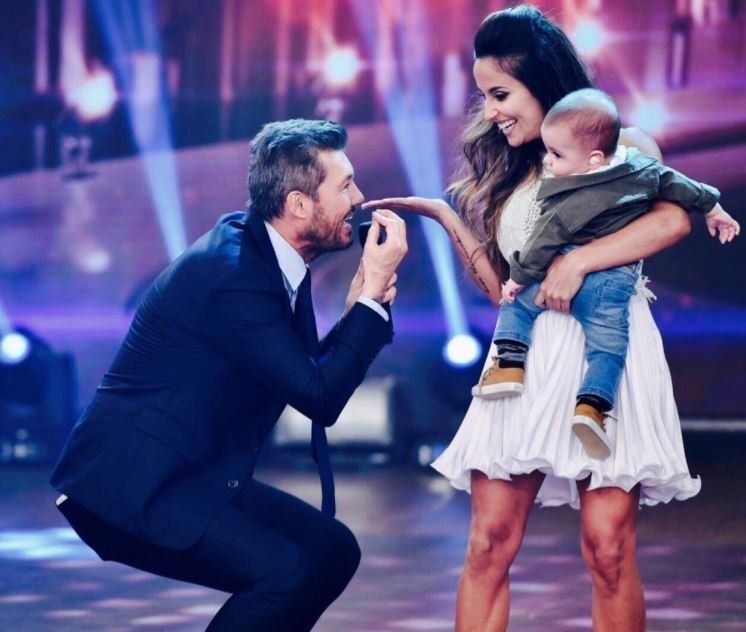 La bailarina ingresó a la pista con su hijo Valentín, el ahijado de Marcelo Tinelli, quien se robó el protagonismo. El conductor le dio de comer en vivo e intentó llamar su atención con diferentes morisquetas.