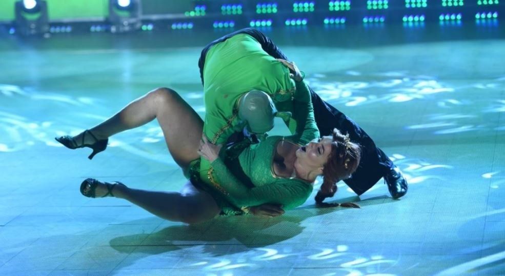 Nancy Pazos terminó la coreografía del rock en "ShowMatch" en el piso. Es que cuando la pareja realizó el truco final, el bailarín no la sostuvo y ella terminó cayendo al suelo.