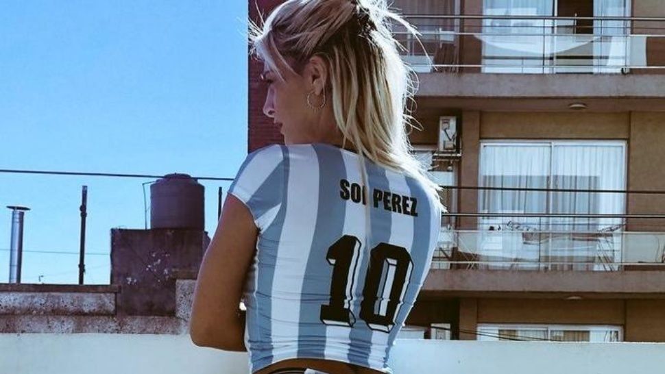 Sol Pérez se sumó a la movida de Jimena Barón de alentar a la Selección argentina con una diminuta tanga minutos antes del partido ante Croacia.