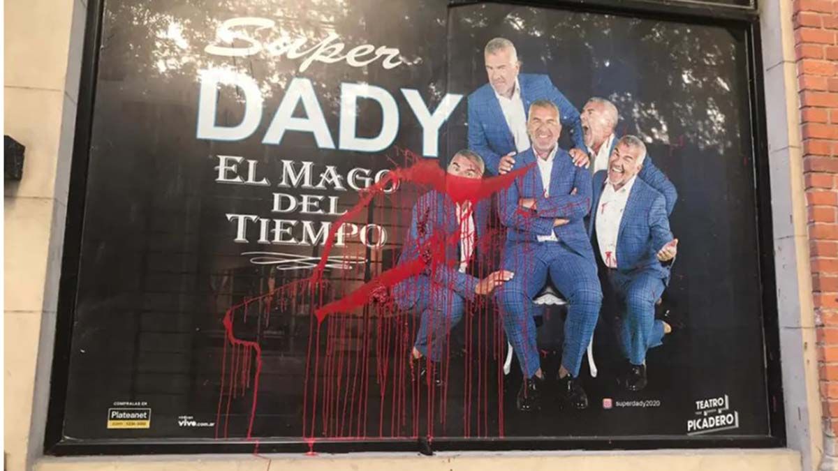 Dady Brieva fue el centro de un escrache con pintura roja y excrementos. Detractores del cómico identificado con el kirchnerismo bandalizaron uno de los afiches ubicados en el teatro El Picadero, en Buenos Aires. Todo ocurrió el sábado 26 de diciembre, pero trascendió este martes.