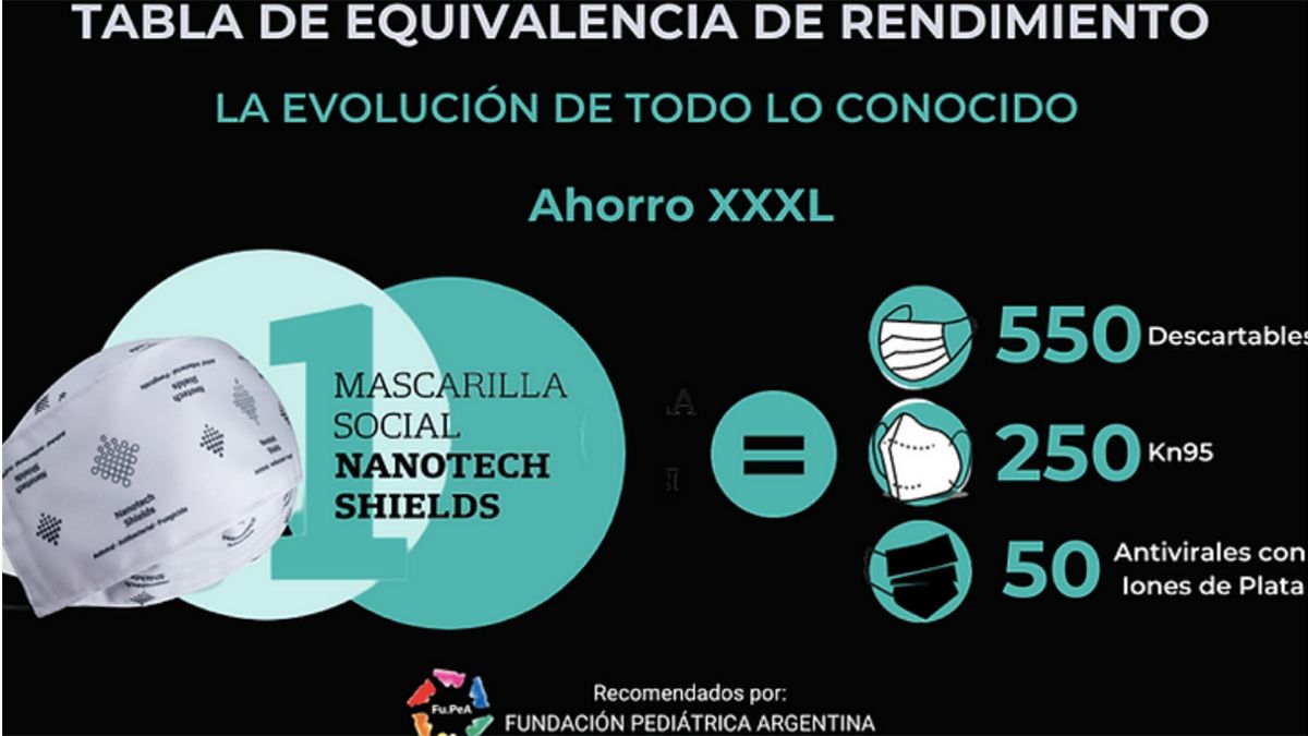 Por otra parte, las mascarillas Nanotech Shields 7.3 son recomendadas por la Fundación Pediátrica Argentina (Fupea)