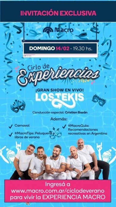 La emisión será este domingo 14 de febrero a las 19:30hs y el público tendrá acceso a través de la web del banco: www.macro.com.ar/ciclodeverano