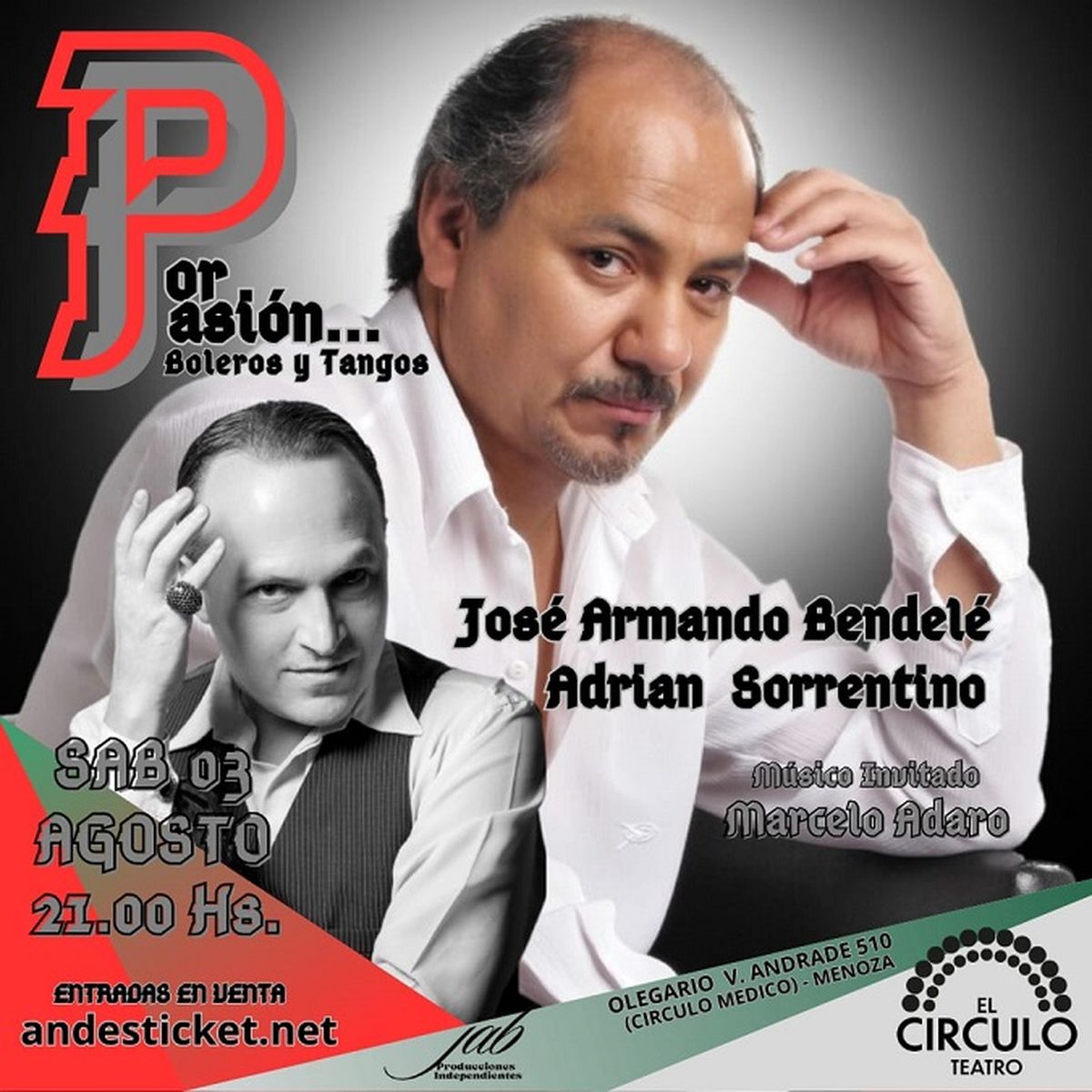 “Por Pasión,Boleros y Tangos” es el nuevo espectáculo del Cantautor José Armando Bendelé, donde pondrá en escena con su versátil capacidad interpretativa y particular estilo, un amplio repertorio de los clásicos y afamados del Cancionero Popular Nacional e Internacional.