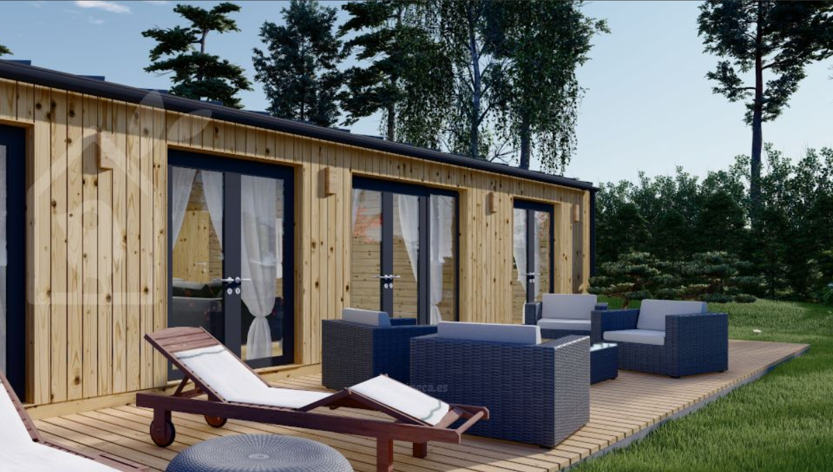 Además, esta vivienda cuenta con aislamiento básico de las casas de madera, asegura un confort térmico óptimo para estancias más largas, tanto si decide vivir en ella durante los meses de verano como de invierno.