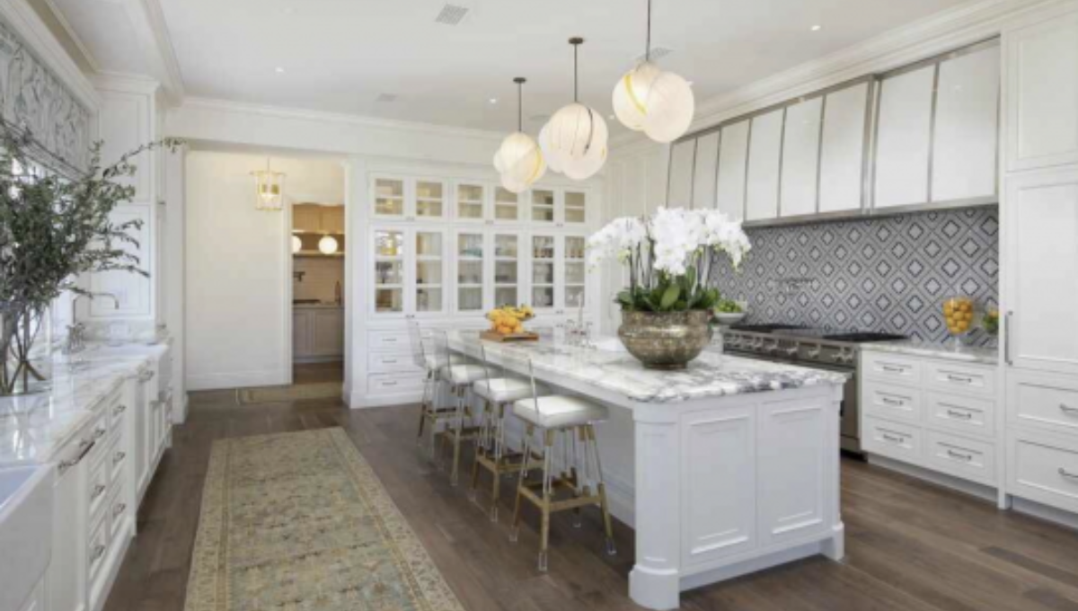En el exterior, el césped tratado cuidadosamente es la base de un jardín con una piscina infinita y vegetación preciosa. A pesar de esto, lo más llamativo de la mansión en general es la cantidad de cocinas: una al aire libre, otra de catering, la propia de huéspedes y la principal.