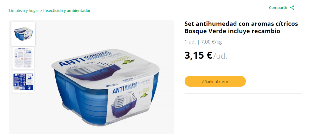 El producto de limpieza en cuestión que ofrece Mercadona es el Set Antihumedad con Aromas Cítricos de Bosque Verde. El mismo es fácil de usar, ayuda a prevenir crecimiento de hongos y tiene un precio muy asequible.