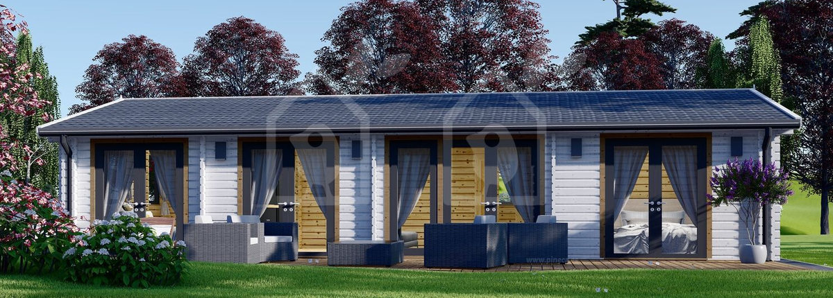 Según la página oficial de Pineca, esta casa prefabricada fue diseñada con el objetivo de disfrutar de la luz natural y del paisaje de su alrededor. Así mismo, es la casa perfecta para 4 o más personas donde, gracias a sus amplios espacios, cada residente, puede disfrutar de su propio espacio privado. Esta vivienda cuenta con: