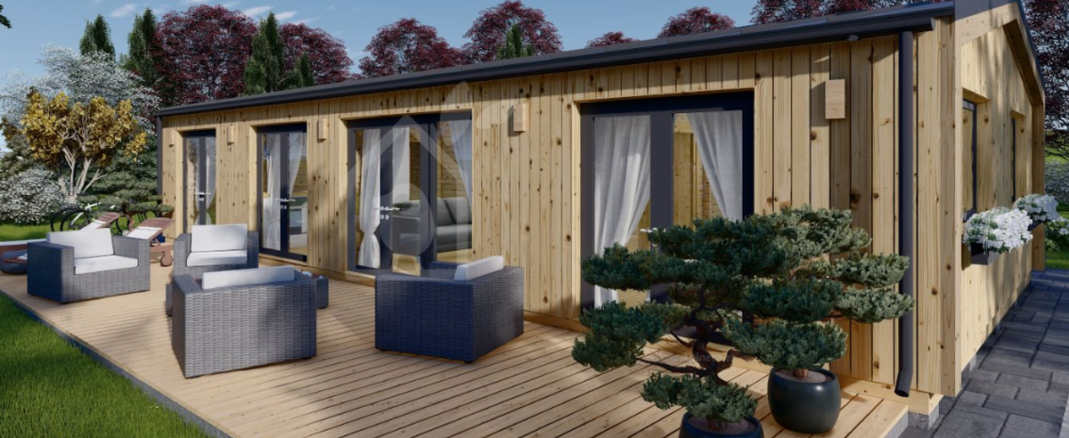 Según el sitio oficial de Pineca esta casa prefabricada fue diseñada para acomodar hasta seis personas en tres espaciosos dormitorios. Esta vivienda de madera es ideal para una residencia permanente, ya que ofrece a cada miembro de la familia la máxima privacidad y comodidad. Así mismo cuenta con otras características como: