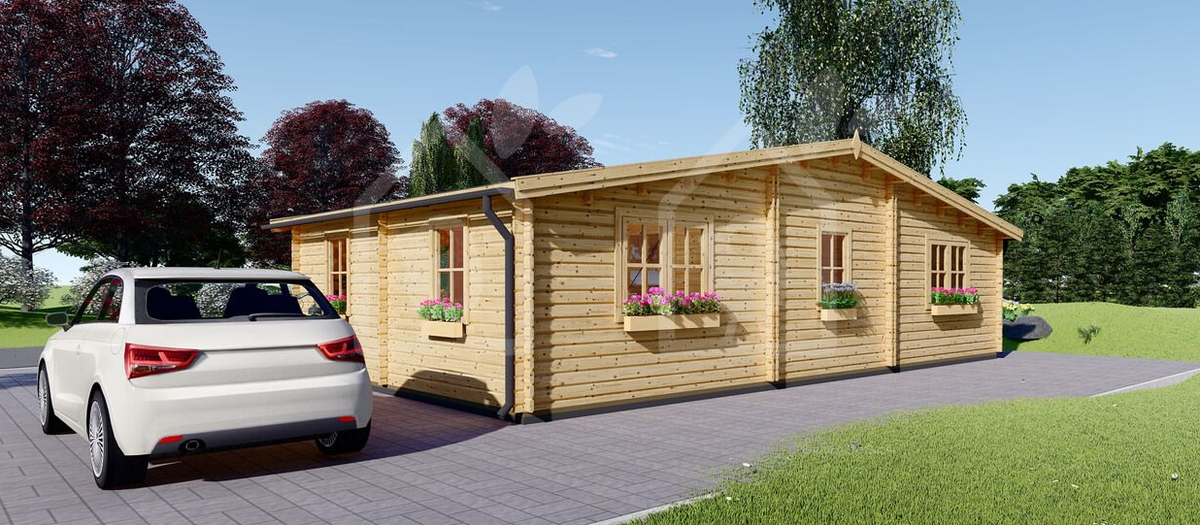 Esta casa prefabricada cuenta con una garantía de al menos 2 años y un plazo de entrega, entre en 8-12 semanas. Así mismo, en el precio de esta vivienda están incluidos IVA, viguetas, suelo, paredes y tabiques, puertas y ventanas de cristal doble, marco, listones, herrajes y material de aislamiento (tablas de poliestireno de 50 mm para paredes, techo y suelos).