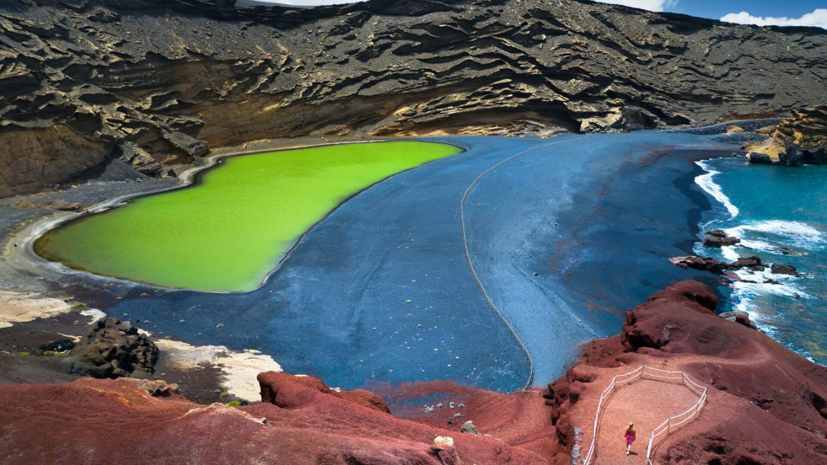 Esta playa está rodeada de un impactante entorno natural, lo que hace al Charco de los Clicos tan especial es su color verde intenso, que es el resultado de la presencia de algas en el agua y la interacción de estos organismos con los minerales del cráter.
