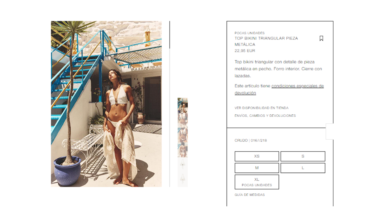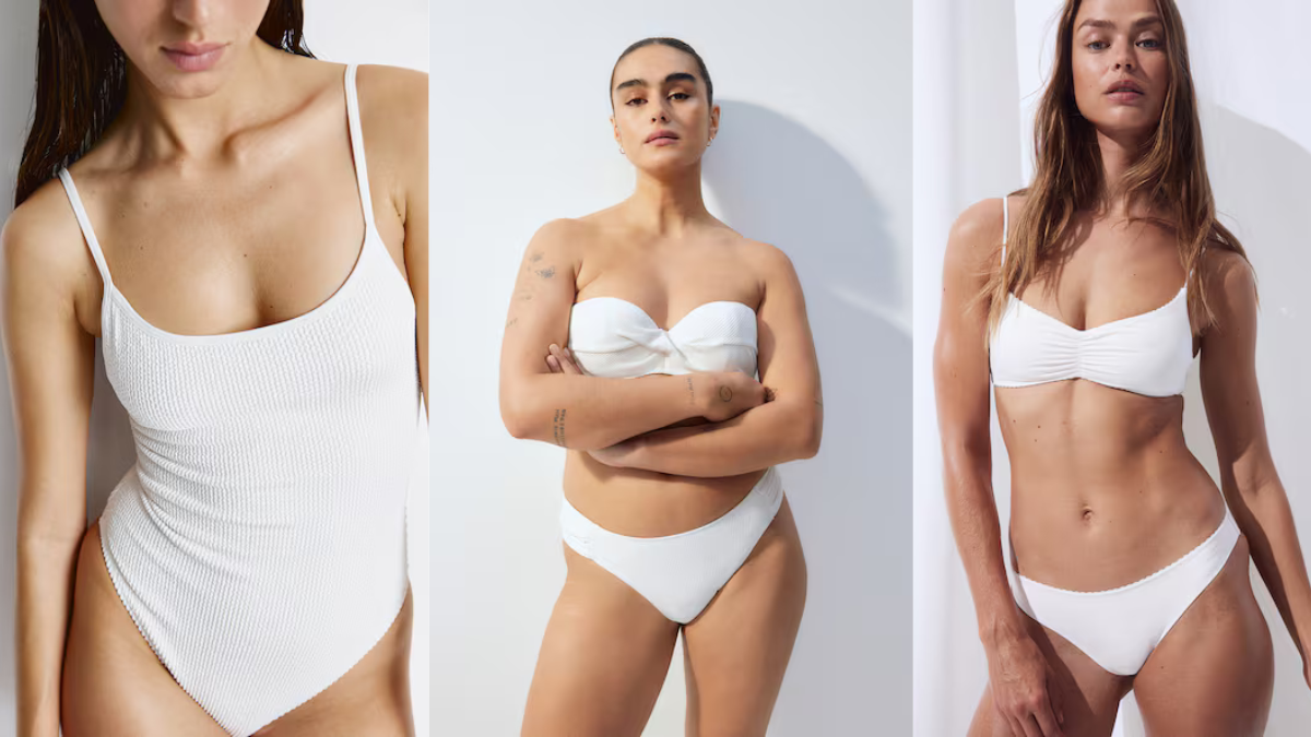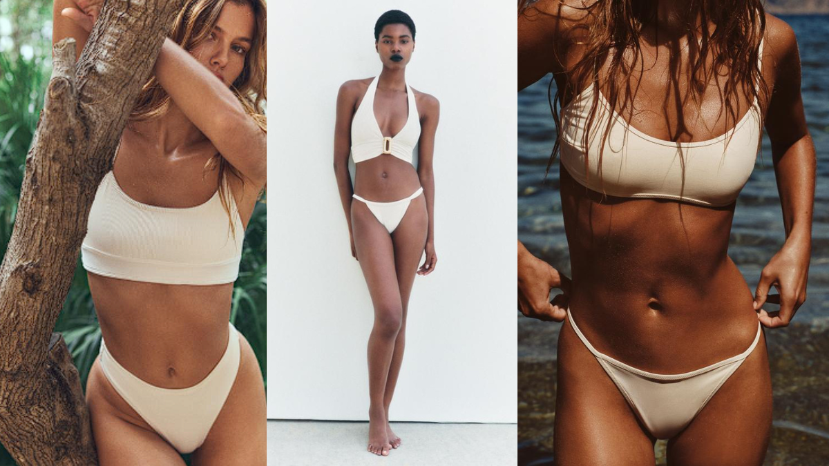 En Zara hay una gran variedad de bikinis y trajes de baño en color blanco. Distintos modelos para cada gusto. Los precios comienzan desde los 11 euros y van hasta los 29 para los bañadores.