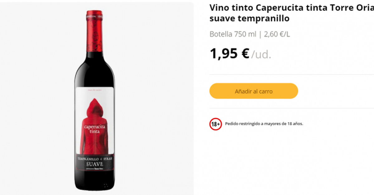 Embotellado por Torre Oria y elaborado con una mezcla de las variedades de uva Tempranillo y Syrah, se ofrece en Mercadona en una botella opaca de 750 ml, decorada con una etiqueta que muestra una silueta de espaldas con el nombre del vino, y en la parte trasera, un lobo con capucha roja, en clara alusión al clásico cuento infantil "Caperucita Roja" de Charles Perrault.