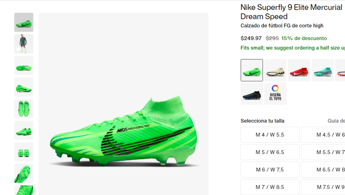 Lo cierto es que Nike ha decidido aplicar un 15% de descuento a las botas de Cristiano Ronaldo, por lo que puedes llevártelos a tu hogar por 249,97 dólares (233 euros). SIn la oferta, el precio de las botas es de 295 dólares, el equivalente a 275 euros aproximadamente.