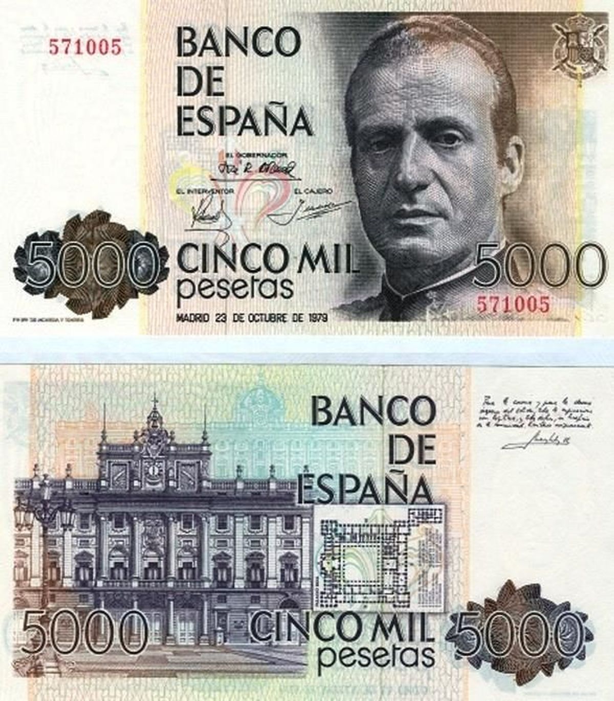 Uno de los billetes más destacados en el mercado numismático es el de 5.000 pesetas impreso el 23 de octubre de 1979. Este billete es fácilmente reconocible por la imagen del Rey Juan Carlos que aparece en su diseño.