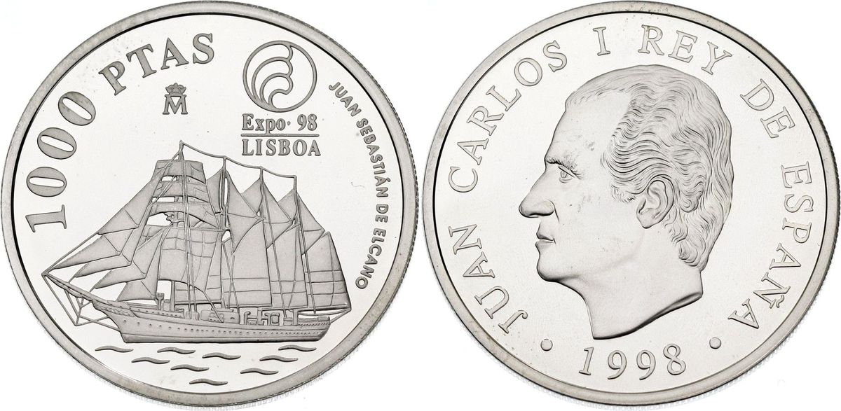 Una moneda de particular interés en el ámbito numismático es la de 1000 pesetas emitida en 1998 por España. Esta moneda fue creada para conmemorar la Exposición Universal de Lisboa, conocida como Expo '98, un evento que celebró los 500 años de las exploraciones marítimas portuguesas y su impacto en el mundo. La Expo Lisboa se centró en el tema de los océanos y la herencia marítima, y España participó activamente en este evento, destacando su propio legado de exploración y descubrimiento.