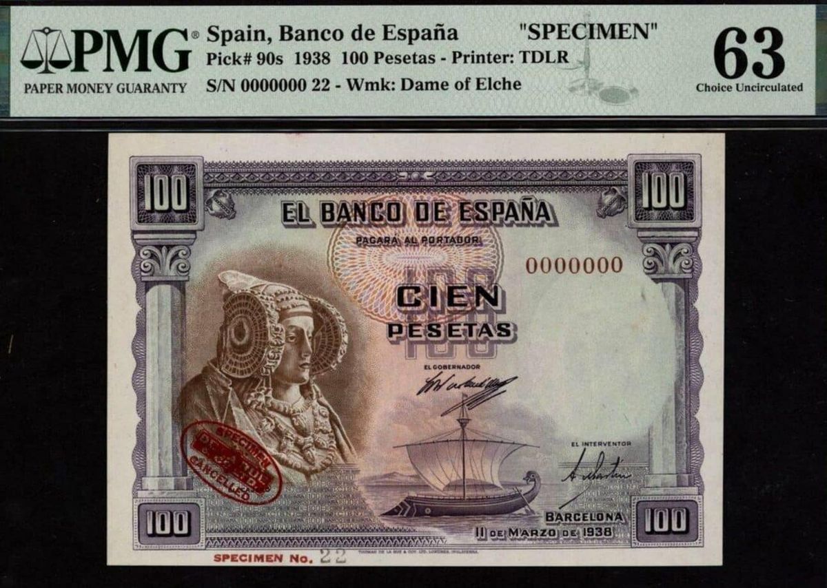 El billete de 100 pesetas de 1938 es considerado uno de los más codiciados debido a su diseño y su historia. Aunque su emisión fue encargada por la Segunda República, nunca llegó a circular ampliamente debido a la intervención del bando franquista, que confiscó y destruyó la mayoría de los billetes.