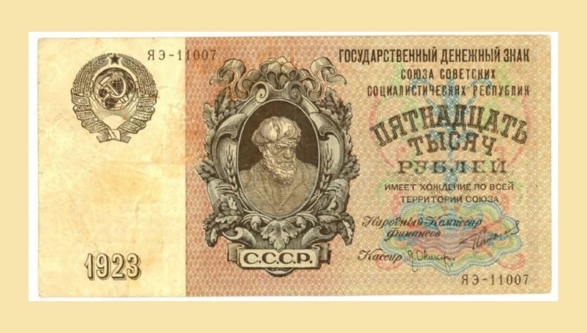 Entre ellos, algunos billetes han alcanzado un estatus especial, tanto por su diseño como por su historia, como es el caso del billete de 15.000 rublos emitido en Rusia en 1923.