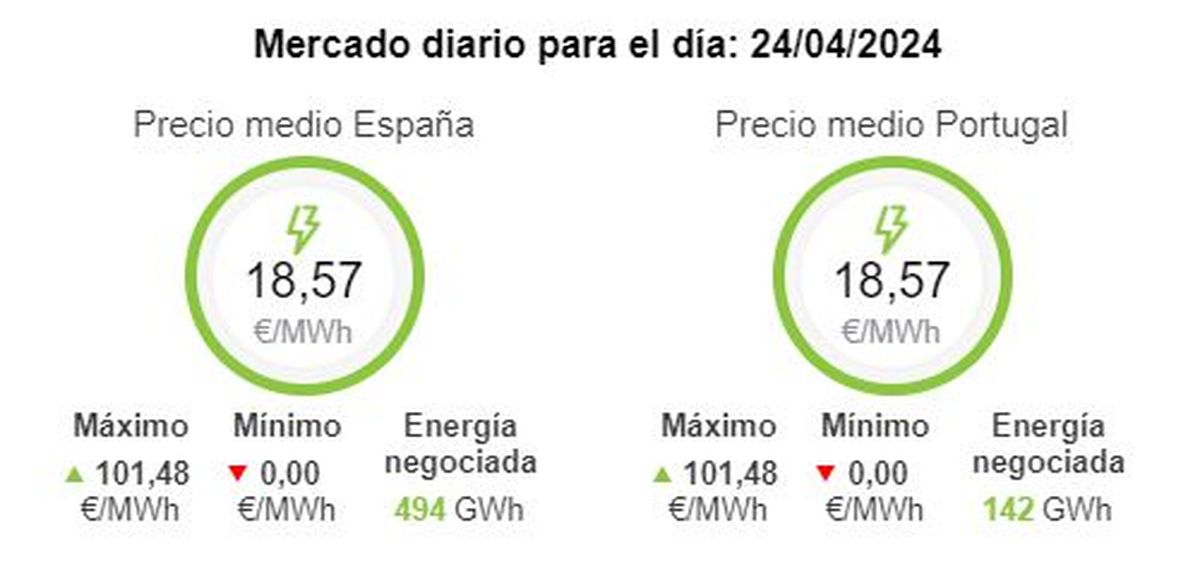 - De 06:00 a 07:00: 17,33 euros por MWh