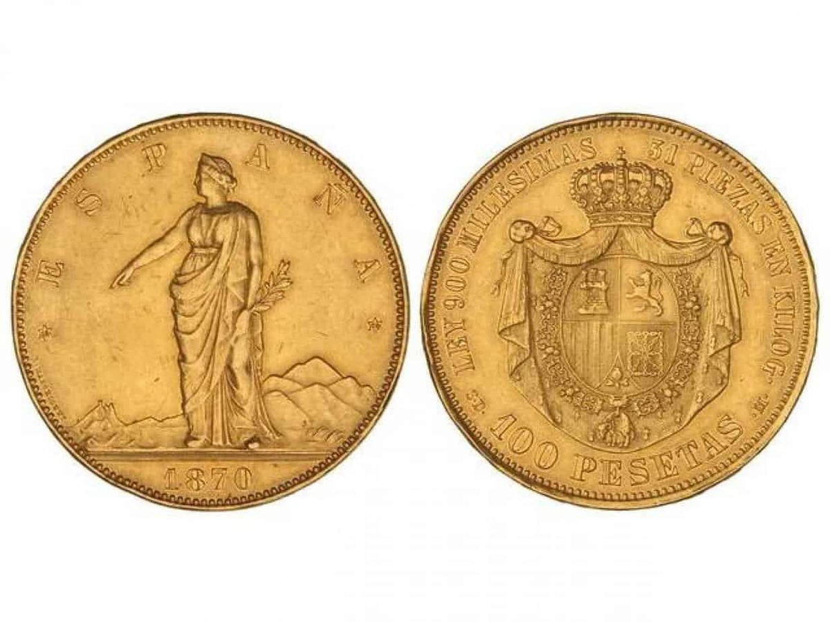 La moneda en cuestión es una pieza acuñada en 1870 con un valor de 100 pesetas de oro. Esta moneda es extremadamente rara, ya que solo se conocen 12 ejemplares en todo el mundo. De estos, 6 están en manos privadas y las otras 6 forman parte de la colección de la Fábrica Nacional de Moneda y Timbre de España (FNMT).