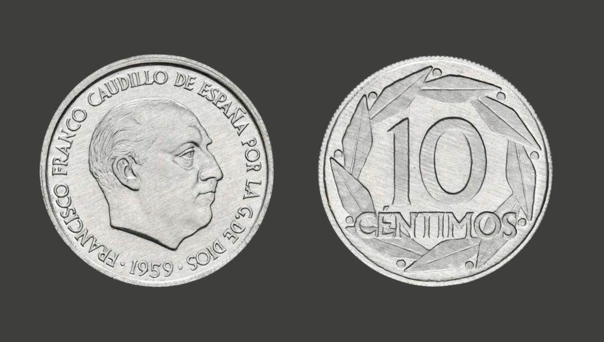 Entre las piezas más codiciadas por los coleccionistas en España, especialmente aquellas acuñadas durante el franquismo, se encuentra la moneda de 10 céntimos de 1959. Esta moneda, hecha de aluminio, tiene un peso de 0,75 gramos, un diámetro de 17,5 milímetros y un grosor de 1,2 milímetros.