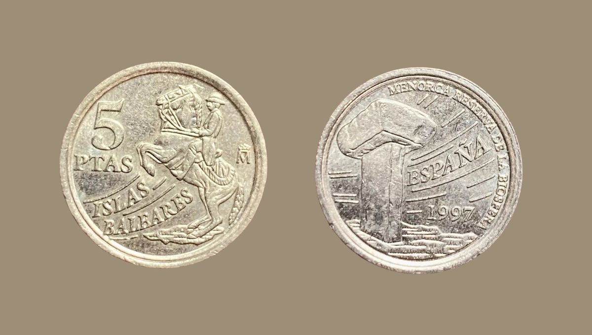 Entre las muchas monedas que circulan en el mercado numismático, destaca la de 5 pesetas acuñada en 1997 con motivo de la conmemoración de las Islas Baleares. Esta moneda, compuesta por una aleación de níquel y cobre, pesa 3,5 gramos y tiene un diámetro de 17,5 milímetros.