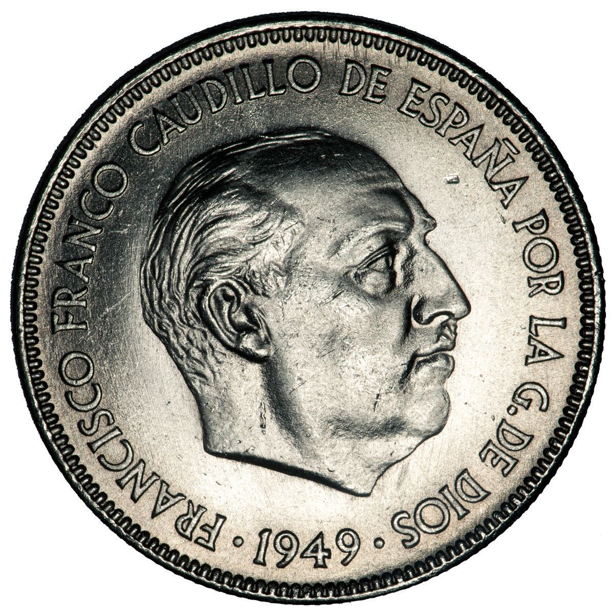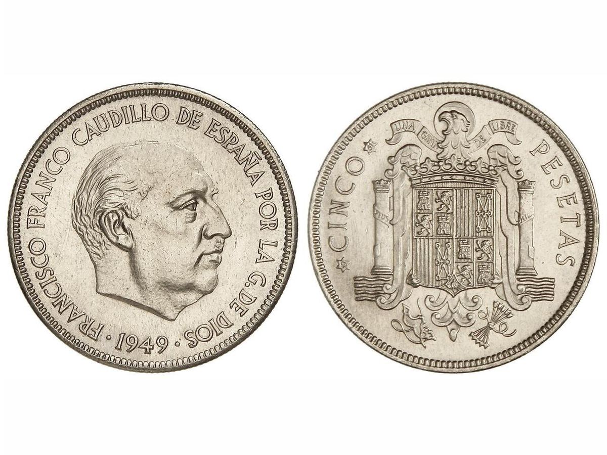La moneda en cuestión es uno de los ejemplares más valiosos del siglo XX, y es la de 5 pesetas del año 1949, la cual refleja el rostro de Franciso Franco.