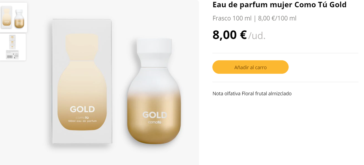 Cuando uno camine por los pasillos del Mercadona y vaya hacia los perfumes, preste atención al Gold Como Tú. Esta fragancia cuesta 8 euros en su formato de 100 ml y es igual al Sí de Giorgio Armani que tiene un precio de 160 euros en la web de Armani y en todas las perfumerías.