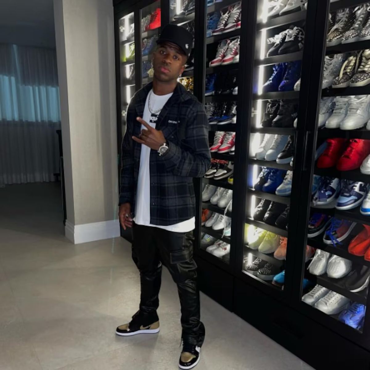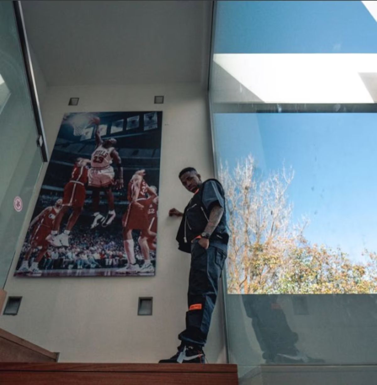 Según lo que Vinicius Júnior publica en sus redes, su "lugar favorito de la casa" es el gran armario iluminado donde guarda sus objetos más preciados: las zapatillas. Por otro lado, sus gustos también están expresados en otros detalles de la casa, como las escaleras donde tiene colgado un gran cuadro de Michael Jordan.