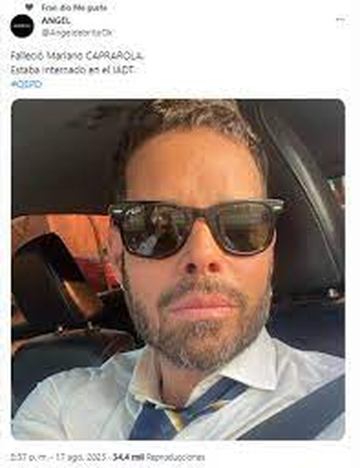 A sus 49 años falleció Marianao Caprarola. Ángel de Brito fue quien confirmó la noticia a través de su cuenta de twitter donde dio detalles de la muerte del crítico fashionista.