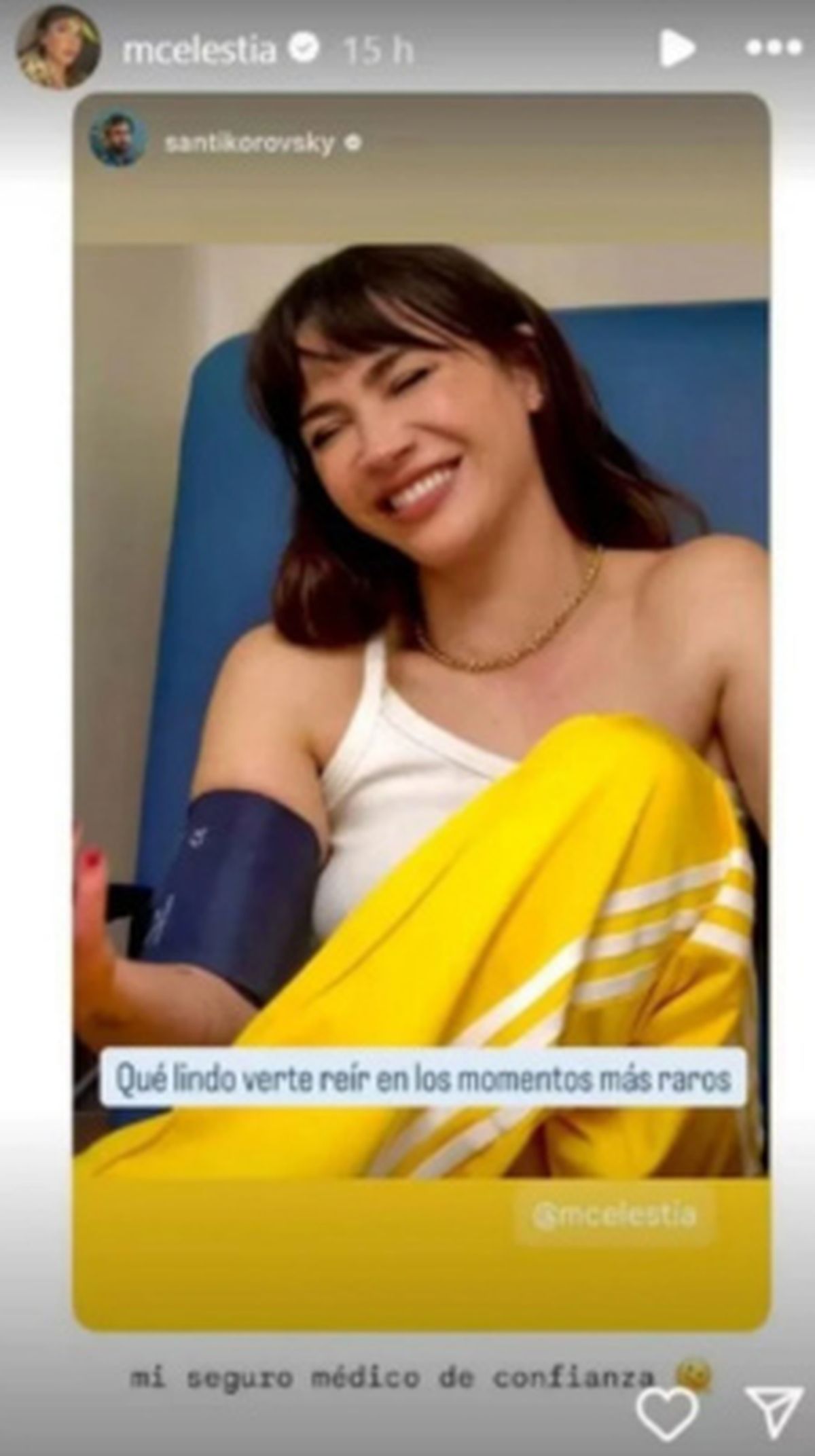 Este fin de semana, Korovsky publicó una foto en sus historias de Instagram en la que se la ve a Cid sonriendo mientras le toman la presión. La actriz compartió el posteo en el que había sido etiquetada y expresó: "Mi seguro médico de confianza".