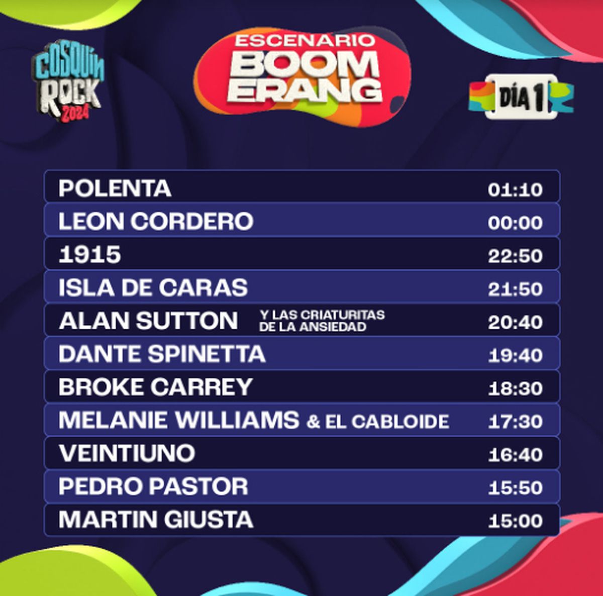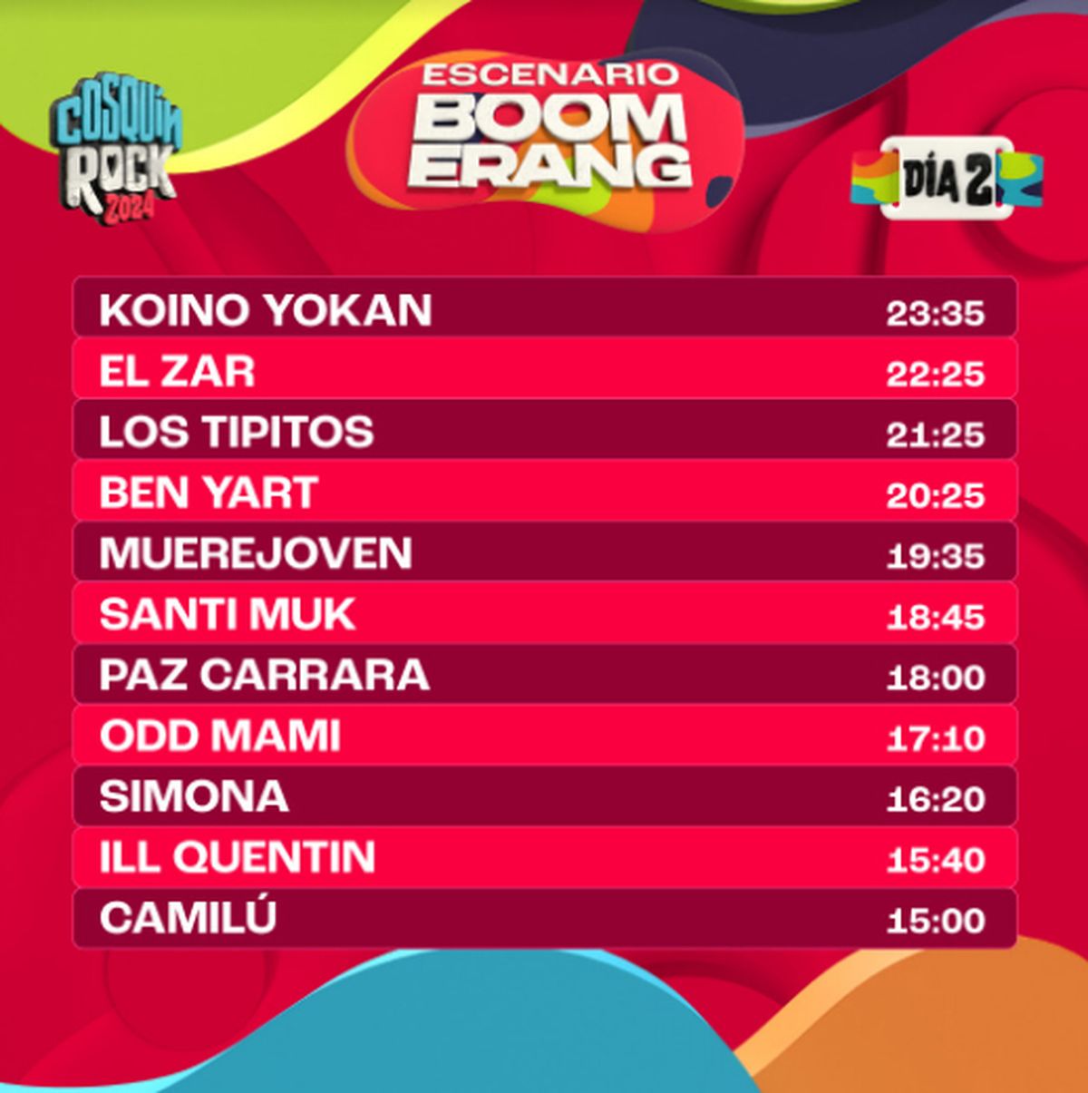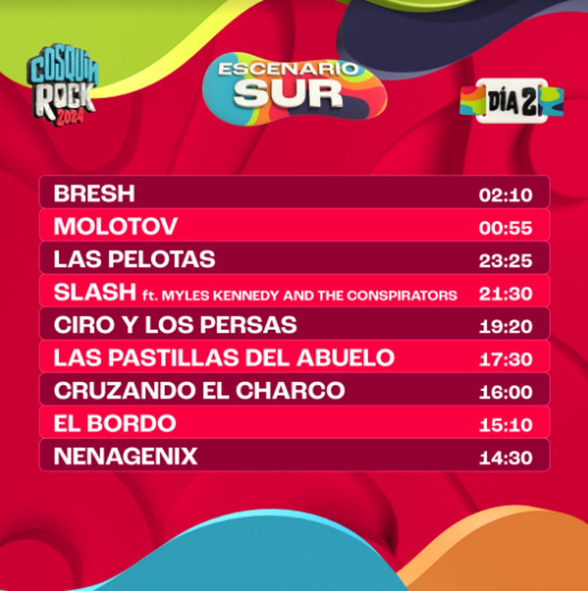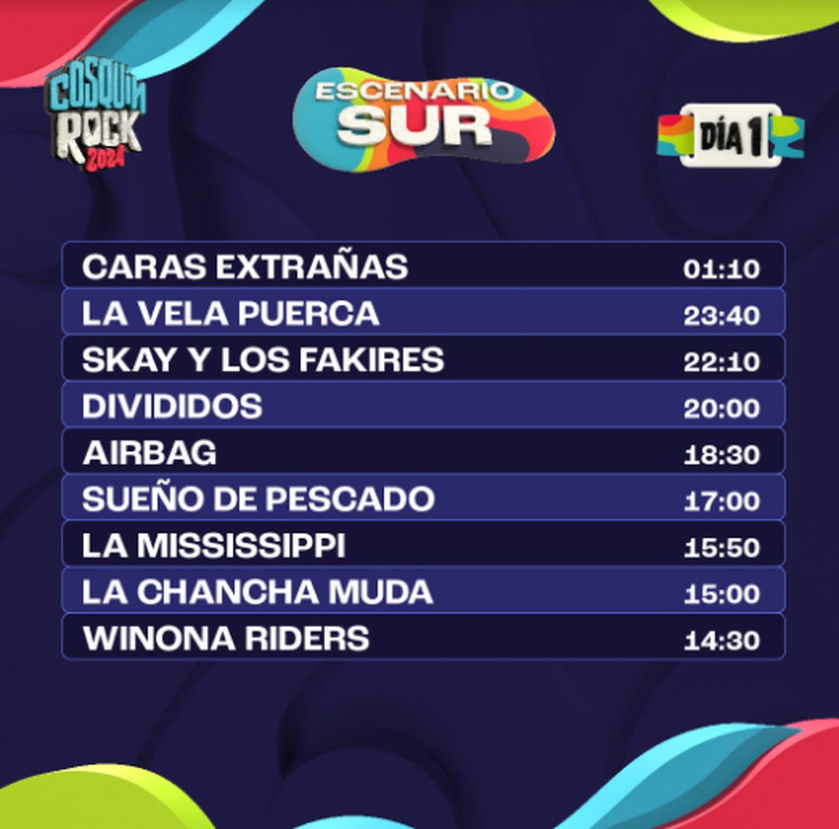A pocos días del esperado evento, se ha anunciado el horario exacto de cada presentación, lo que permitirá a los asistentes planificar sus jornadas. Un dato no menor es que esta edición contará con 6 escenarios diferentes: el Escenario Norte, el Escenario Sur, el Escenario Montaña, el Escenario Paraguay, el Escenario Boomerang y el Escenario La Casita del Blues.