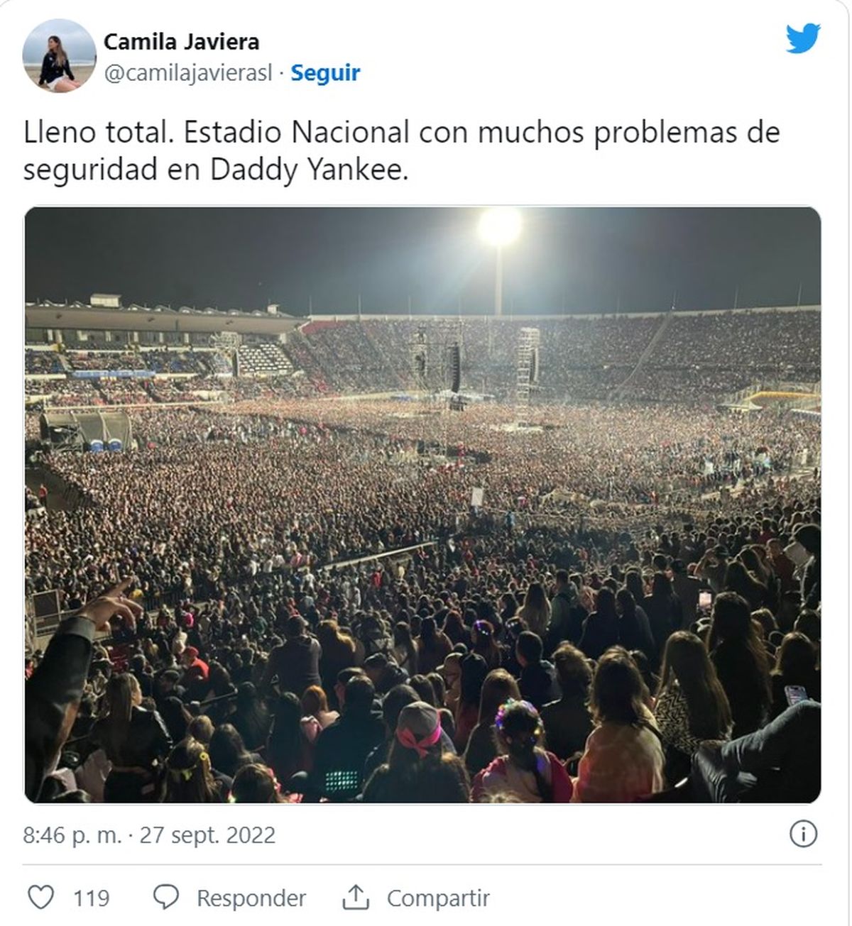Graves incidentes y desmanes se produjeron en el primero de los recitales que el artista puertorriqueño Daddy Yankee brindó en el estadio Nacional de Santiago de Chile, en el marco de su gira "Legendaddy".