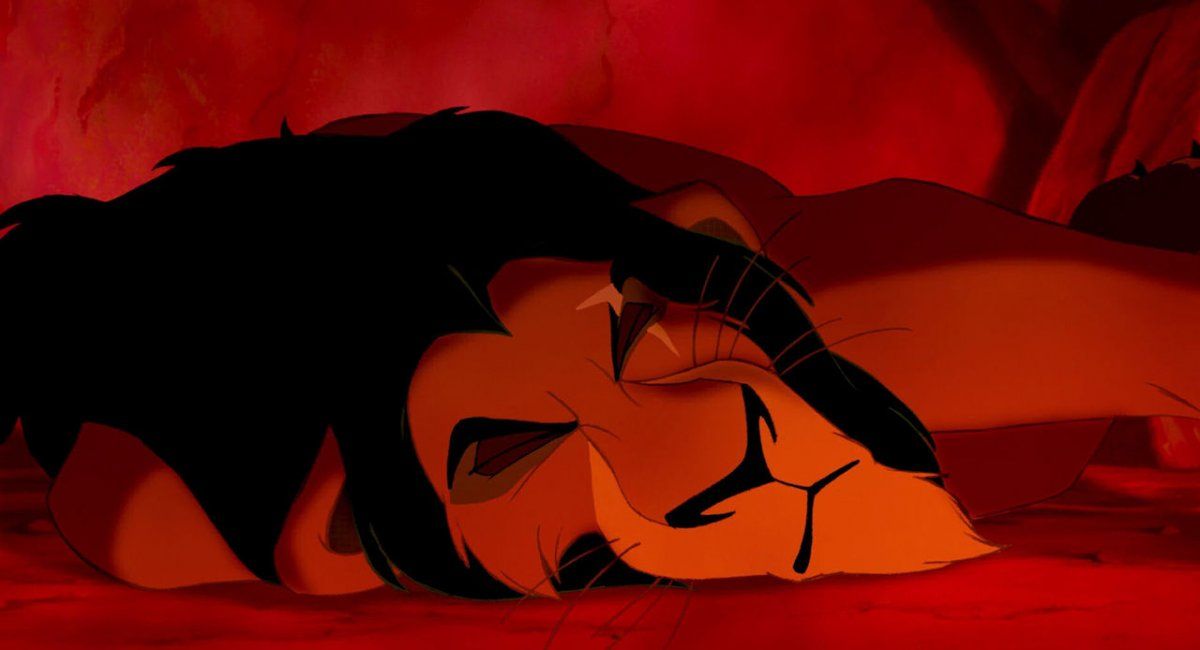 Al pensar en el Rey León, enseguida se nos viene a la mente aquella triste escena en que el Mufasa, el padre de Simba, muere en manos del tío malvado, ese momento cruel que nos deja tan tristes al comienzo de la película. ¿Pero quién recuerda la venganza de Simba y la trágica muerte del tío? Tras una lucha descarnada entre los dos felinos, en la que se atacan y clavan sus uñas uno a otro, en medio de un acantilado envuelto en llamas, Scar es arrojado al precipicio, golpeándose contra las rocas, rodeado de fuego. ¡Pero no muere allí! El león malvado se reincorpora y se encuentra rodeado por la hienas, a quienes cree sus amigas, pero para su sorpresa éstas se acercan poco a poco y puede verse la sombra de cientos de estos ejemplares envueltos en una atmósfera macabra, para finalmente devorarlo vivo, dando lugar al "buen" Simba para convertirse en el nuevo rey. El precio de ser humana