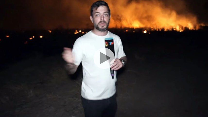Bianco debió interrumpir la transmisión mientras cubría este fenómeno que ya quemó 150 hectáreas de bosque autóctono (comenzó de manera incierta pero se potenció por el calor extremo en el norte del país y las sequías), según dijo TN.