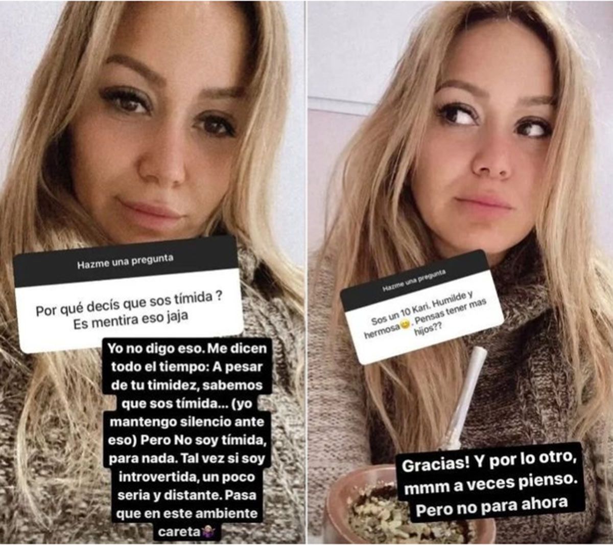 Karina también se animó a hablar sobre su supuesta timidez y al respecto dijo: “Es mentira que soy tímida. Yo no digo que lo sea. Me dicen todo el tiempo ‘a pesar de tu timidez…’, ‘sabemos que sos tímida’. Yo mantengo silencio ante eso, pero no soy tímida para nada. Tal vez, sí soy introvertida, un poco seria y distante. Pasa que este ambiente es careta...”, aseveró.