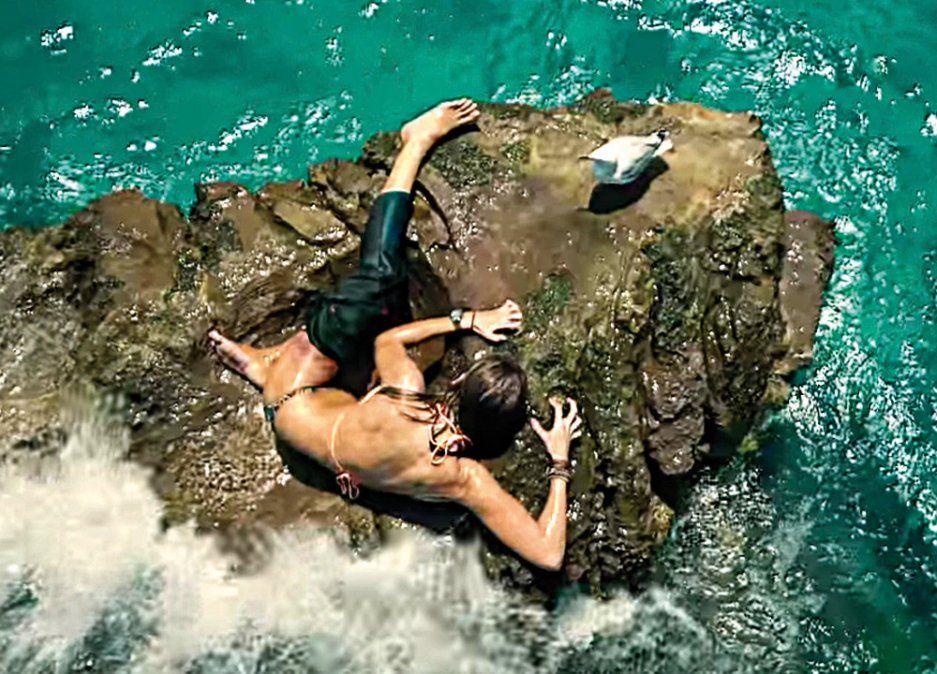 Para empeorar la situación, hay un tiburón blanco acechándola y esperando poder atraparla.