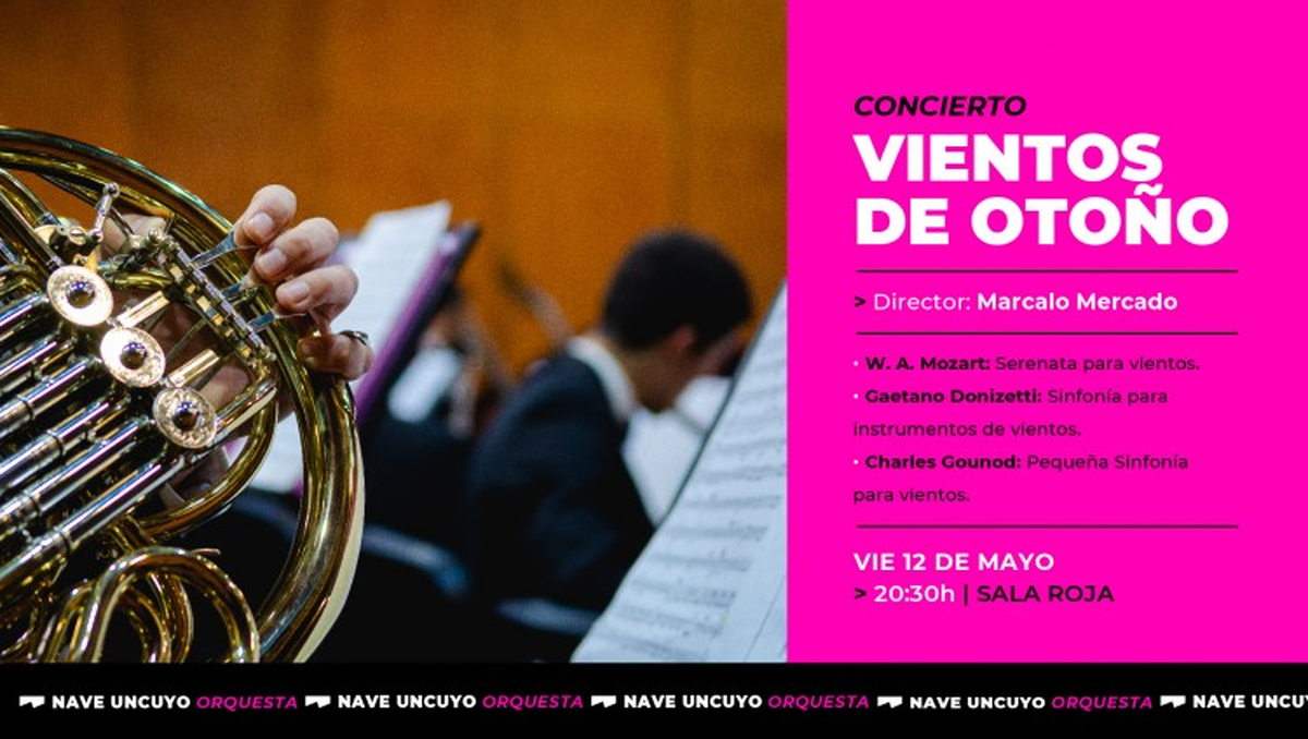 El concierto será este viernes a las 20.30 en la Nave UNCuyo bajo la dirección de Marcelo Mercado. Las entradas se pueden adquirir en www.entradaweb.com.ar. Su valor es de $800 general y $600 para estudiantes, docentes, personal no docente y personas jubiladas. También se pueden adquirir en boletería de la Nave UNCuyo (Maza 250, Ciudad) de martes a domingo de 18 a 21.