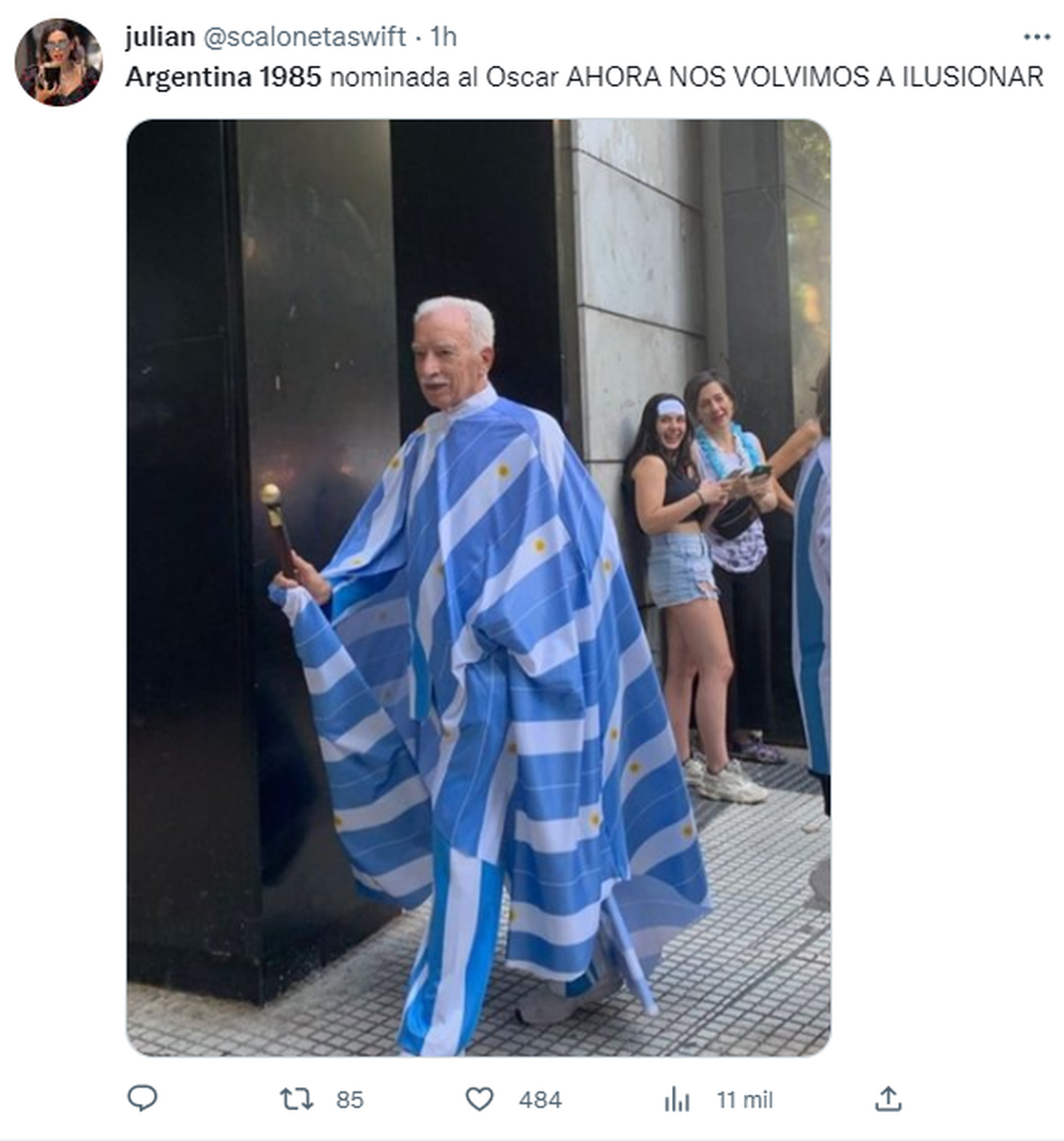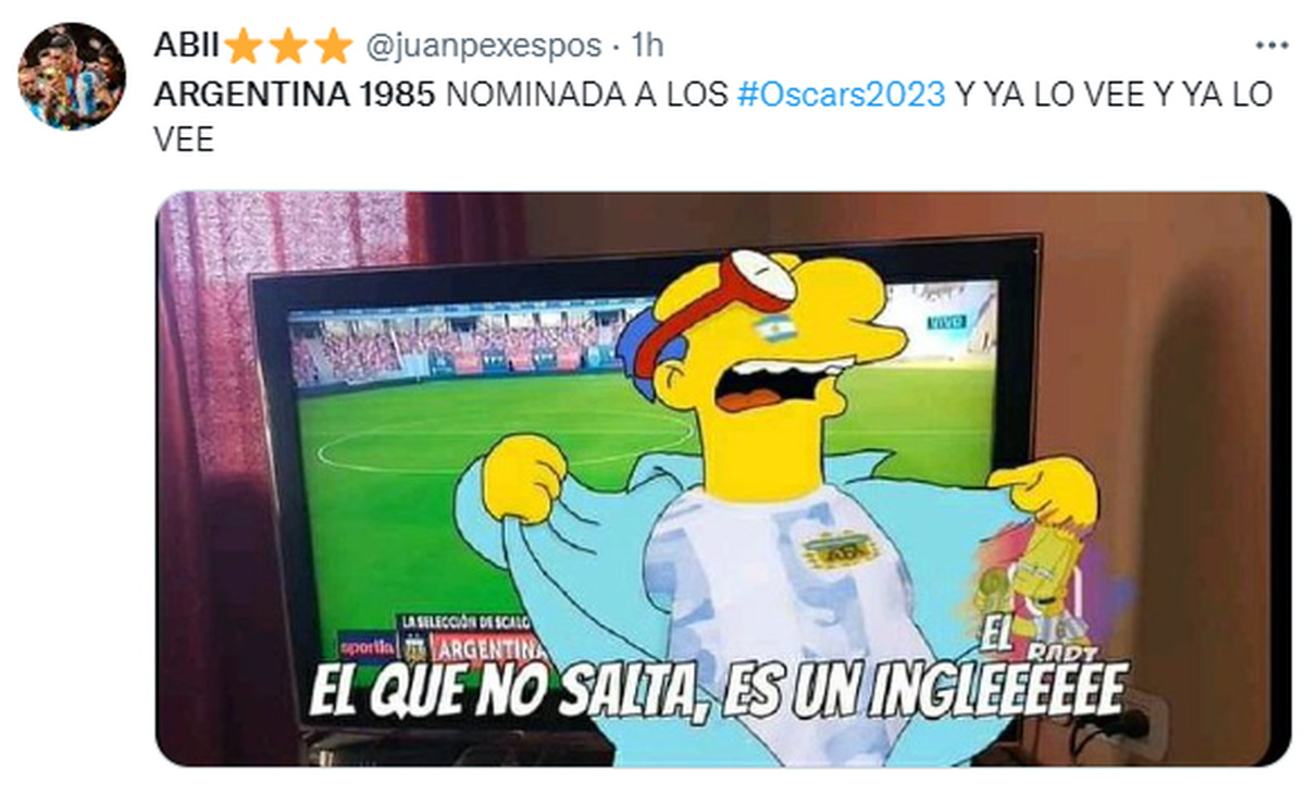 "Argentina 1985" fue nominado para los Premios Oscar para ser elegida como Mejor Película Extranjera y causó furor en Twitter, entre los fanáticos de la red social. El film protagonizado por Ricardo Darín reunió una gran cantidad de memes en festejo de la nominación y algunos hasta la comparararon con la Copa del Mundo de la Selección Argentina.