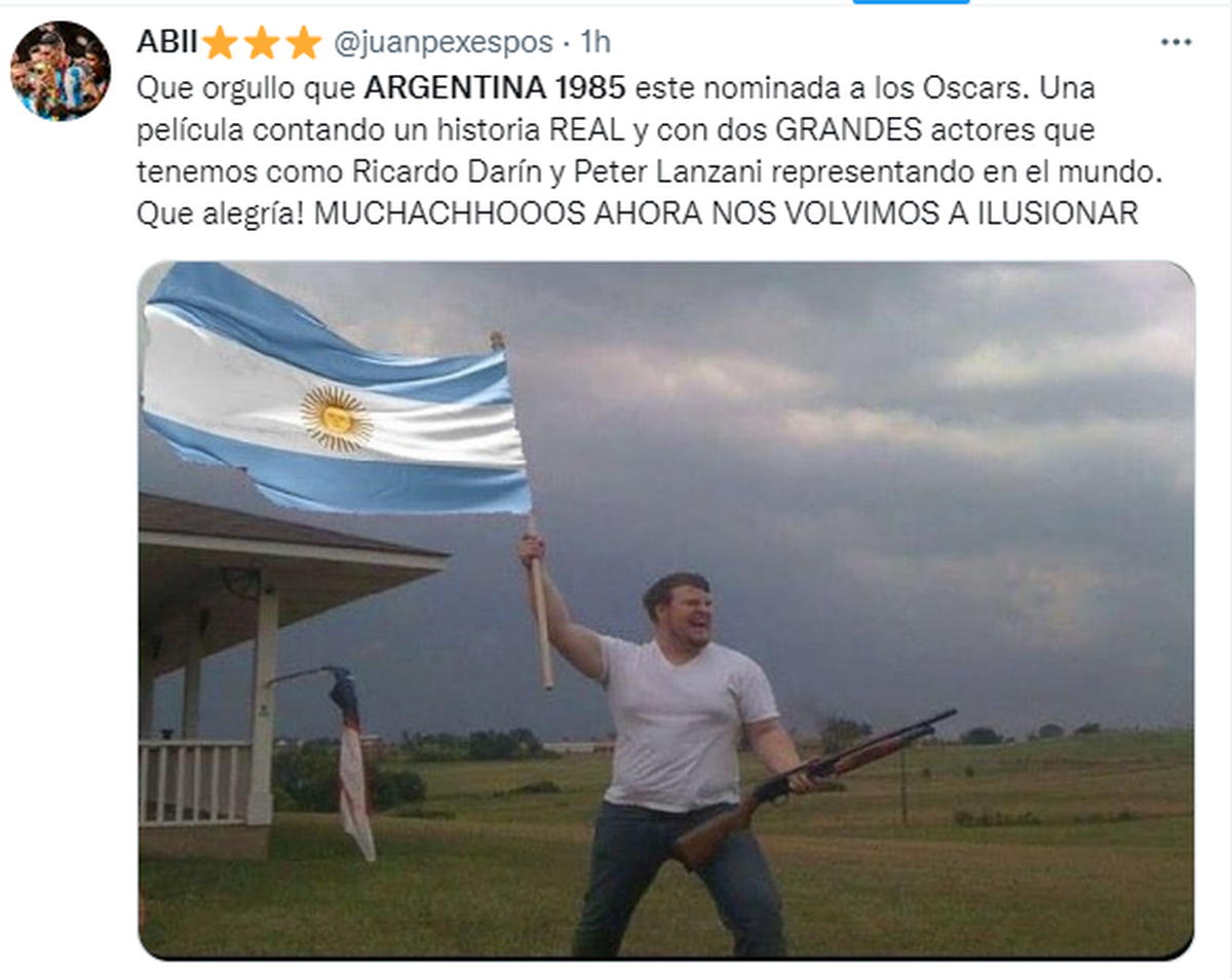 Desde que la Selección comandada por Lionel Messi ganó la tercera Copa del Mundo, en Argentina todo es motivo de festejo. Luego de ganar el Globo de Oro al mejor filme extranjero, "Argentina 1985" fue nominado en los Premios Oscar como Mejor Película Extranjera y Twitter estalló en celebración de este nuevo logro, con el cual ya todos se ilusionaron.