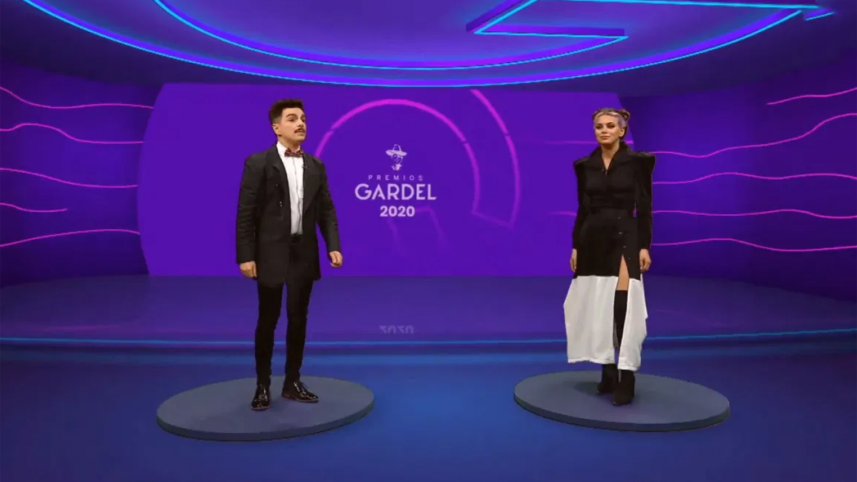 La ceremonia de los Premios Gardel se transmitió por streaming y por TNT y se levó a cabo desde un estudio con pantalla gigante detrás, con el color violeta como dominante. Ale Sergi y Natalie Pérez presentaron como primer video una versión de “Mi amor” de Charly García y Pedro Aznar a cargo de los Miranda! y Lali Esposito, cada uno desde los lugares donde cumplen la cuarentena.