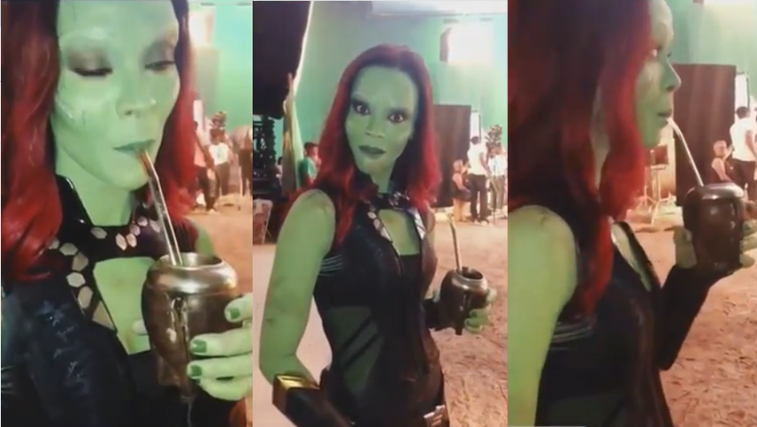 Es que un video que publicó Zoe Saldaña, actriz que personifica a Gamora, la muestra disfrazada como el personaje tomando mate y hablando español con un tono muy divertido.