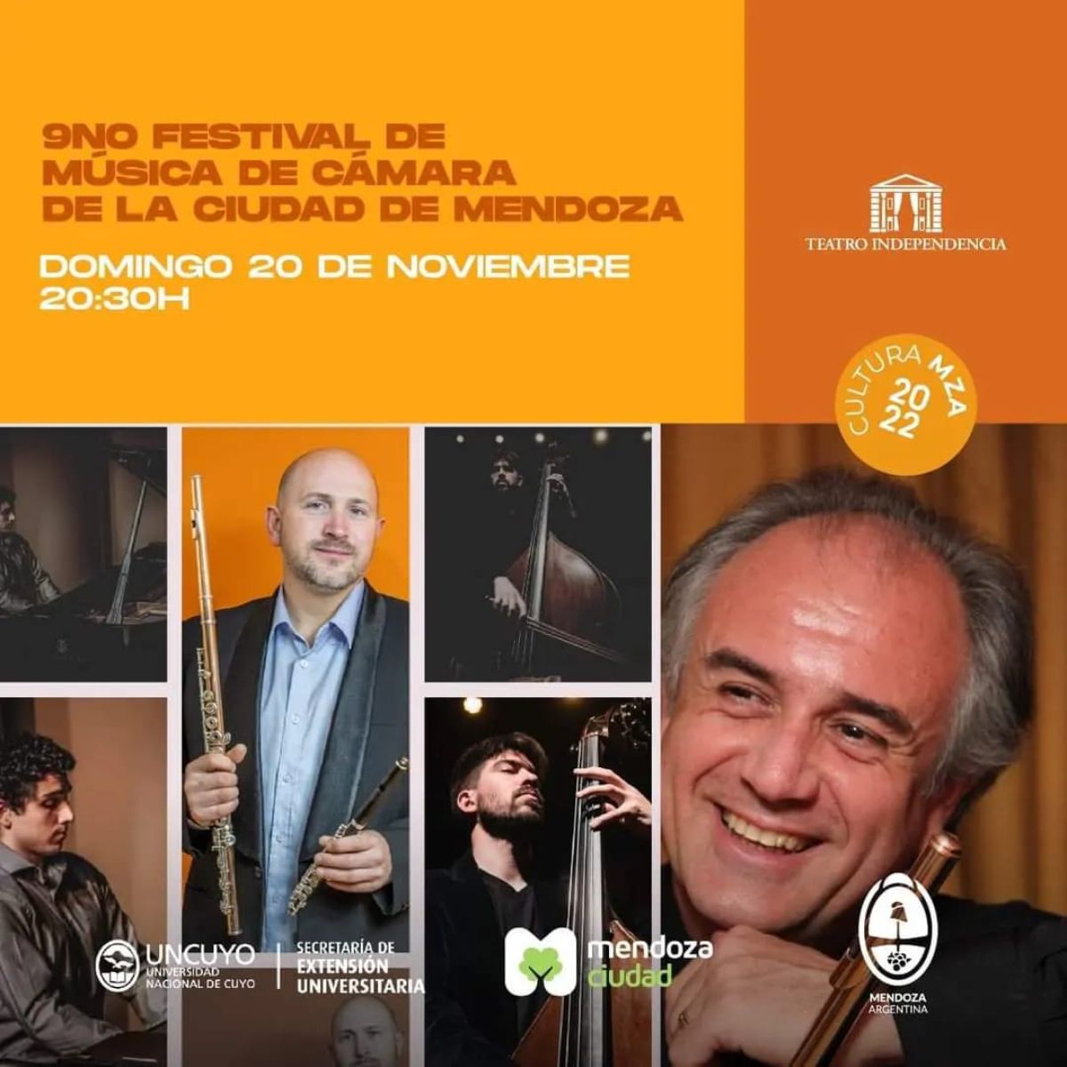 Este próximo domingo 20 de noviembre, hay una cita imperdible en la agenda cultural mendocina. Se presentarán en escena destacados artistas mendocinos e invitados nacionales en el Teatro Independencia, en un concierto con entrada gratuita en el marco del Noveno Festival de Música de Cámara de la Ciudad de Mendoza.