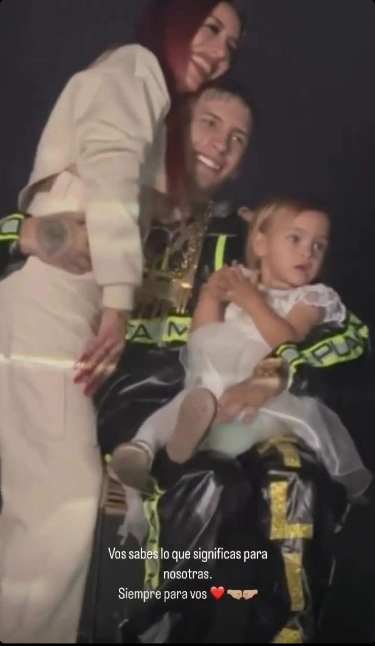 "Vos sabés lo que significás para nosotras. Siempre con vos”, escribió en una historia de Instagram Tamara Báez. La joven acompañó este posteo con una foto donde se la ve junto a L-Gante y a su hija Jamaica.