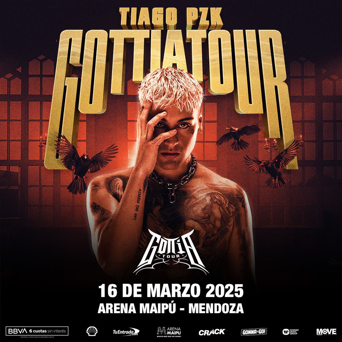 El próximo año llegan increíbles e imperdibles shows a Mendoza y uno de ellos estará protagonizado por Tiago PZK. El músico reconocido mundialmente por la BZRP Music Session 48 con Bizarrap llegará a la provincia con su nueva gira "Gotti A Tour" y hará explotar el Arena Maipú Stadium.