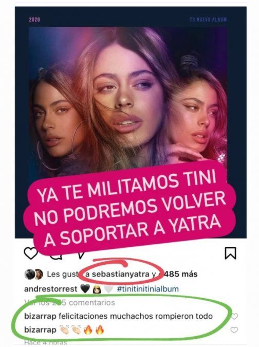Incluso en este disco está incluida la canción "Oye" que cantaba con el colombiano. Además el disco trae el videoclip de "Te olvidaré" que estrenó este jueves por la tarde. Pero todos los ojos se centraron en el "me gusta" de Yatra a la publicación de Tini en Instagram y se especula con que podría haber una reconciliación.