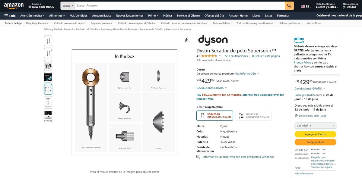 Si estás buscando el secador de pelo ideal, no busques más allá de Amazon. En su vasta selección de productos, se encuentra una joya que ha conquistado tanto a usuarios comunes como a profesionales: el Dyson Supersonic. Este innovador secador de pelo está disponible en Amazon por $429 dólares, con envío gratis incluido para clientes en Estados Unidos.