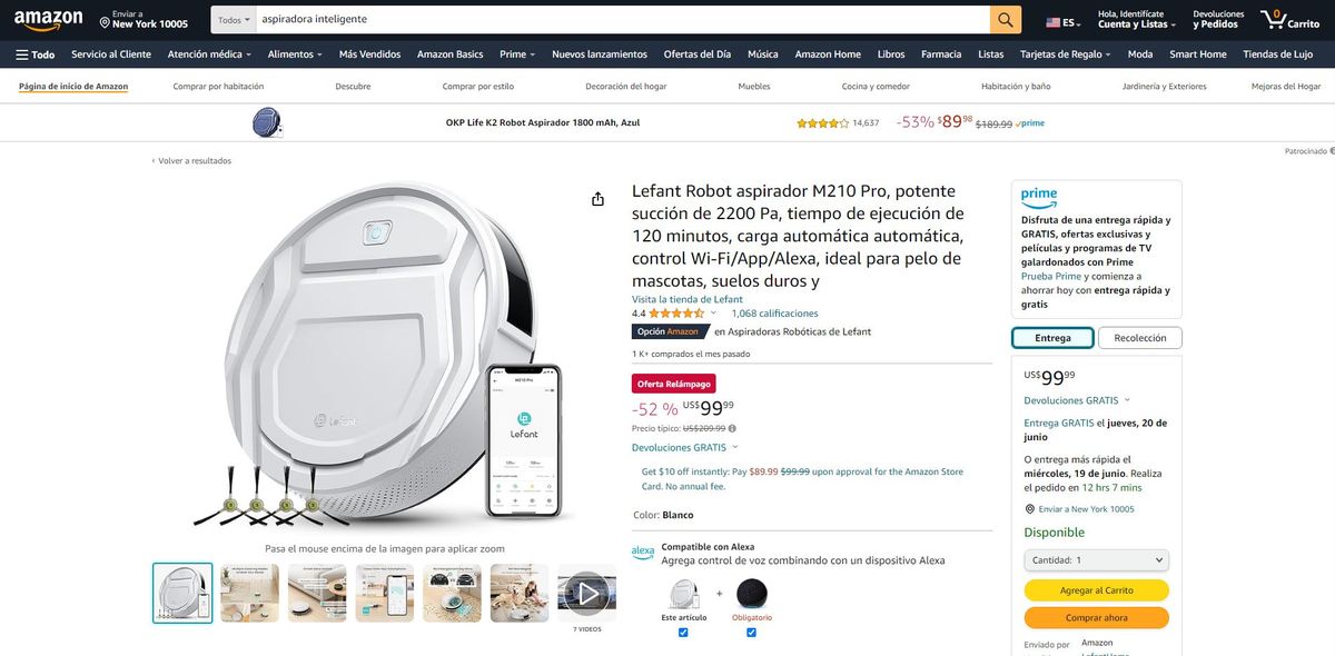 Compra en Amazon una aspiradora inteligente en oferta por menos de 100 dólares