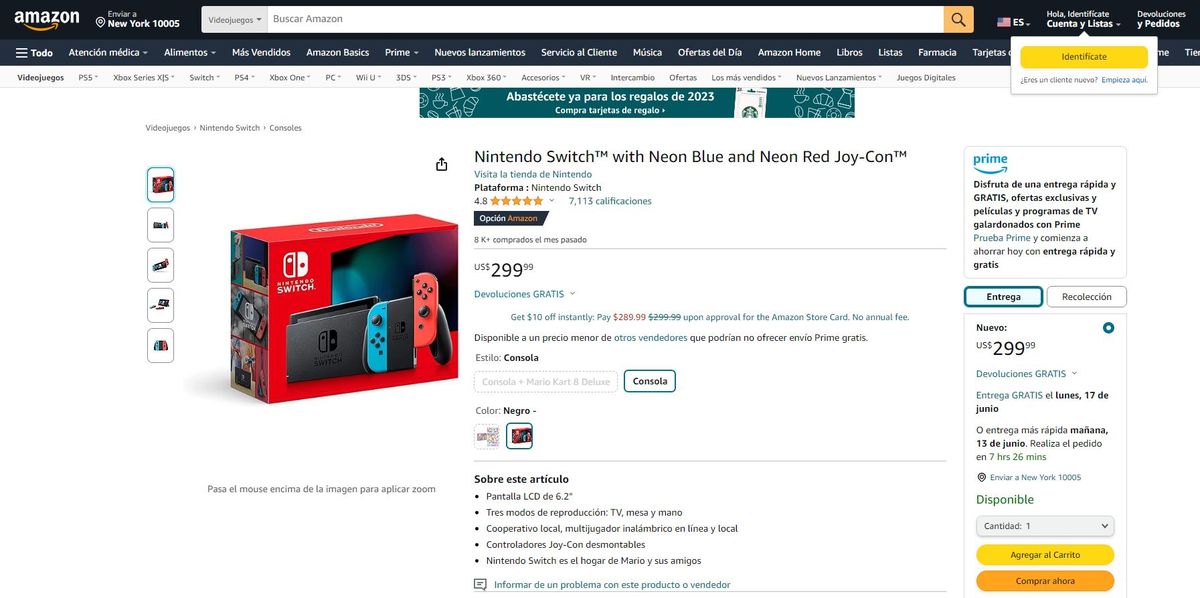 Por un precio de 299 dólares con envío gratuito en Estados Unidos, esta oferta en Amazon ofrece a los entusiastas de los videojuegos la oportunidad de adquirir el Nintendo Switch a un precio atractivo. No pierdas la oportunidad de disfrutar de la emoción de los videojuegos en cualquier momento y en cualquier lugar con el Nintendo Switch.